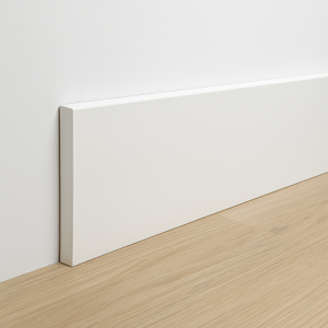 Espesor: 90 mm Dimensiones: 2200 mm x 16 mm Acabado: Blanco / Similar al pavimento Tiras/Paq.: 10 uds. Tablero: DM Altura: 90 mm | Largo: 2250 mm | Ancho: 14 mm Recubrimiento: Papel melamina Adecuado para: Laminado Venta: Por unidad (Tira 2,25 m)